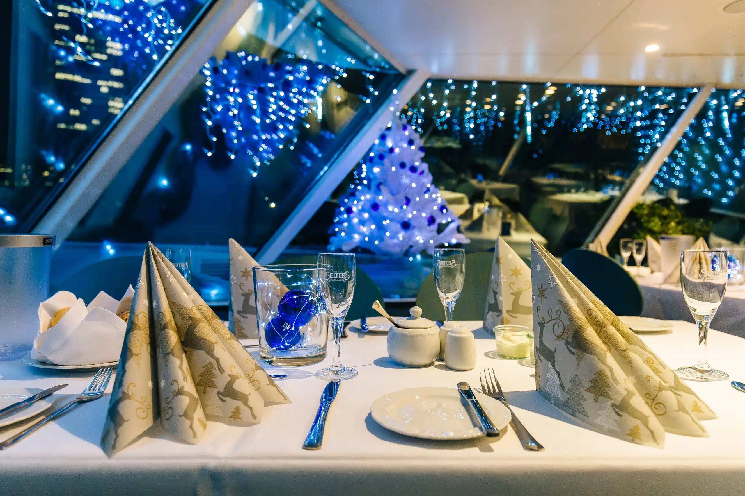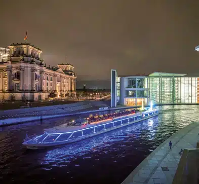 Erleben Sie winterlichen Charme und Gemütlichkeit an Bord des Winterdampfers auf der Spree. Dieses stilvoll eingerichtete Schiff bietet den perfekten Rahmen für festliche Winterfahrten mit bis zu 400 Gästen. Genießen Sie behagliche Wärme, festliche Dekoration und kulinarische Highlights, während Sie die winterliche Hauptstadt vom Wasser aus entdecken – ideal für Weihnachtsfeiern, private Feste oder besondere Winter-Events.
