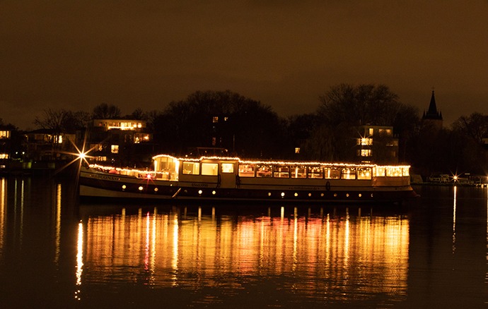 Unsere Bootstouren führen Sie je nach Wunsch über die Spree hinaus bis Grünau, einmal durch die Stadt vorbei an vielen Sehenswürdigkeiten oder einfach zu einer Location am Wasser. Dabei genießen Sie individuell abgestimmte Speisen und Getränke in gemütlicher Kulisse mit liebevoller Weihnachtsdekoration. Unsere Boote sind beheizt und verfügen über ein modernes Bad.